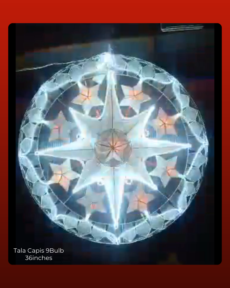 Elevate your surroundings with the 9-bulb Tala Flora Star, a graceful embodiment of timeless beauty and radiance. Inspired by the enchanting Tala, the morning star of Filipino folklore, this meticulously crafted lantern exudes a delicate charm that brings a touch of ethereal allure to your space.