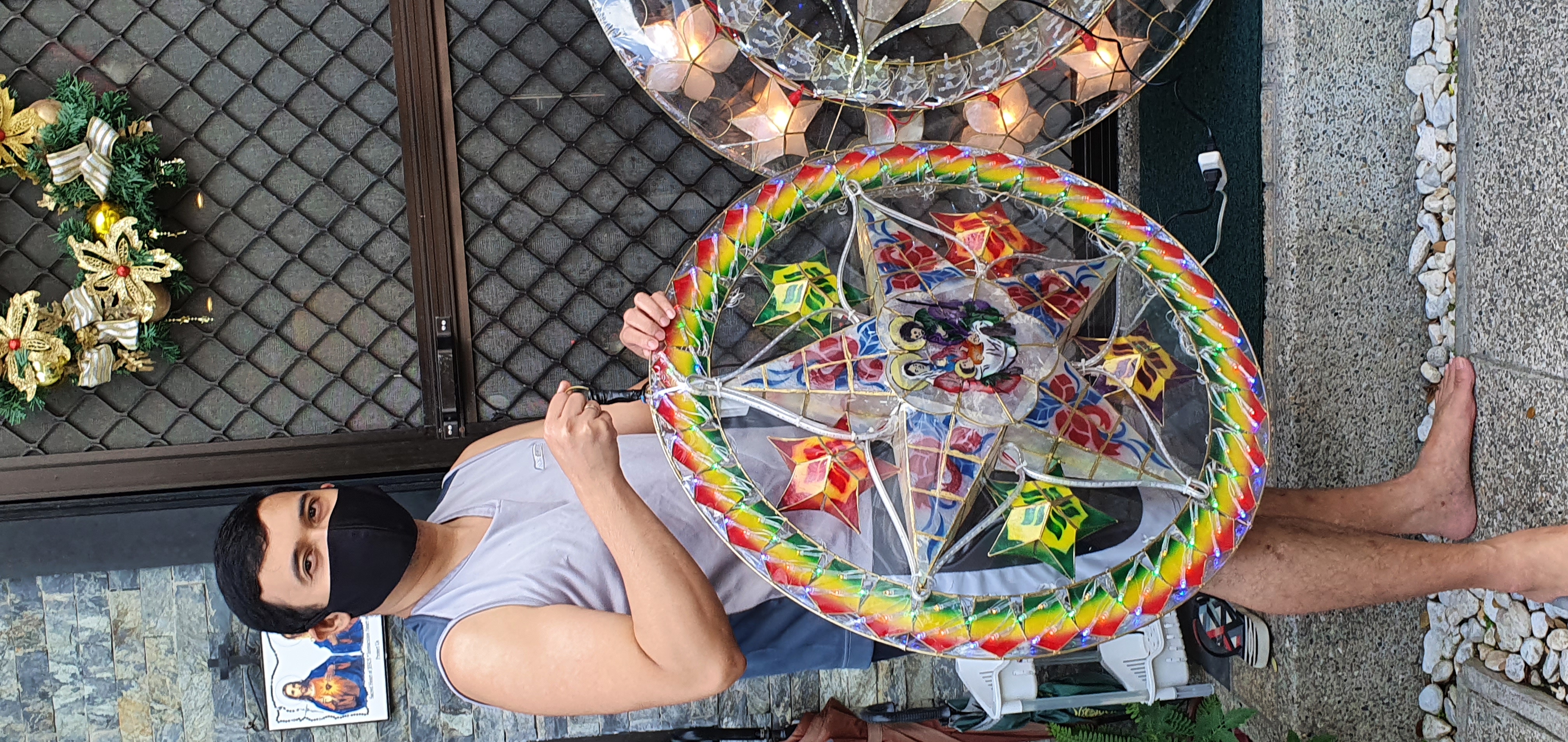 A parol (pronounced [paˈɾol], US: /pɑːˈroʊl/, from Spanishfarol, meaning lantern) is a Filipino ornamental lantern displayed during the Christmas season. Modern parols can be made using capiz shells, usually illuminated with electric lighting. Its most common form is a five-pointed star symbolizing the Star of Bethlehem and can come in various shapes and sizes. It remains an iconic symbol of Filipino Christmas.